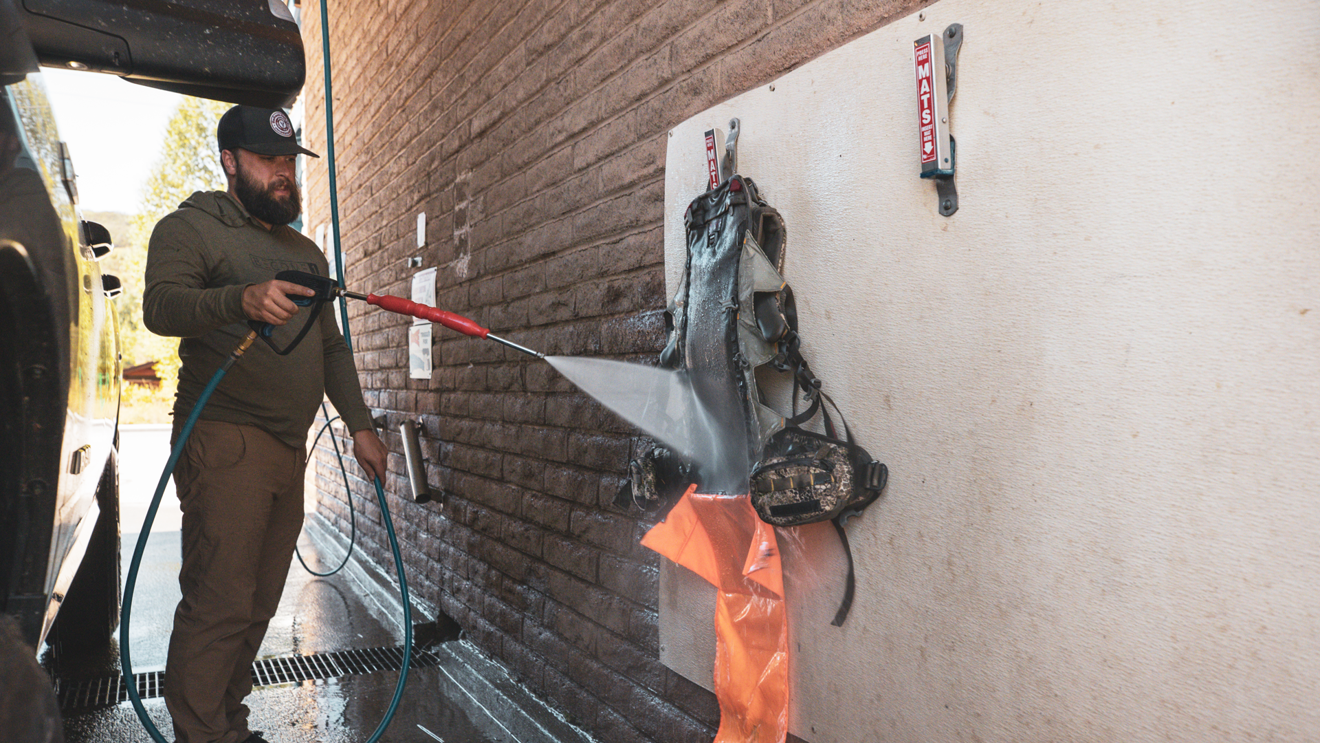 (NOTE: Do not use the soap at the carwash, it’s full of fragrance. Only use the high-pressure rinse setting, and always blast a few seconds worth of water away from your pack to make sure the lines are clear of any soap residue.)