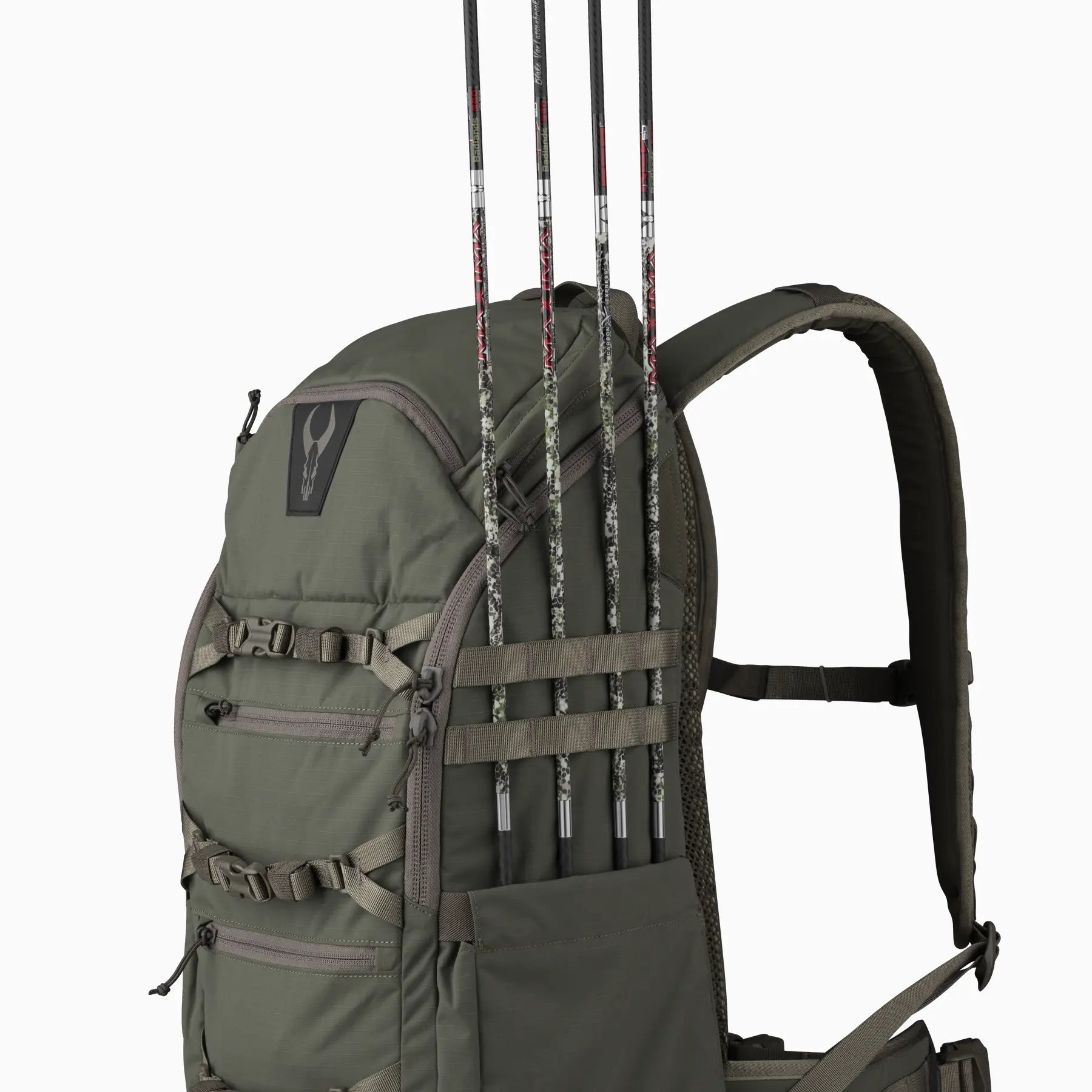 • External straps and bow boot provide hands free bow carry option