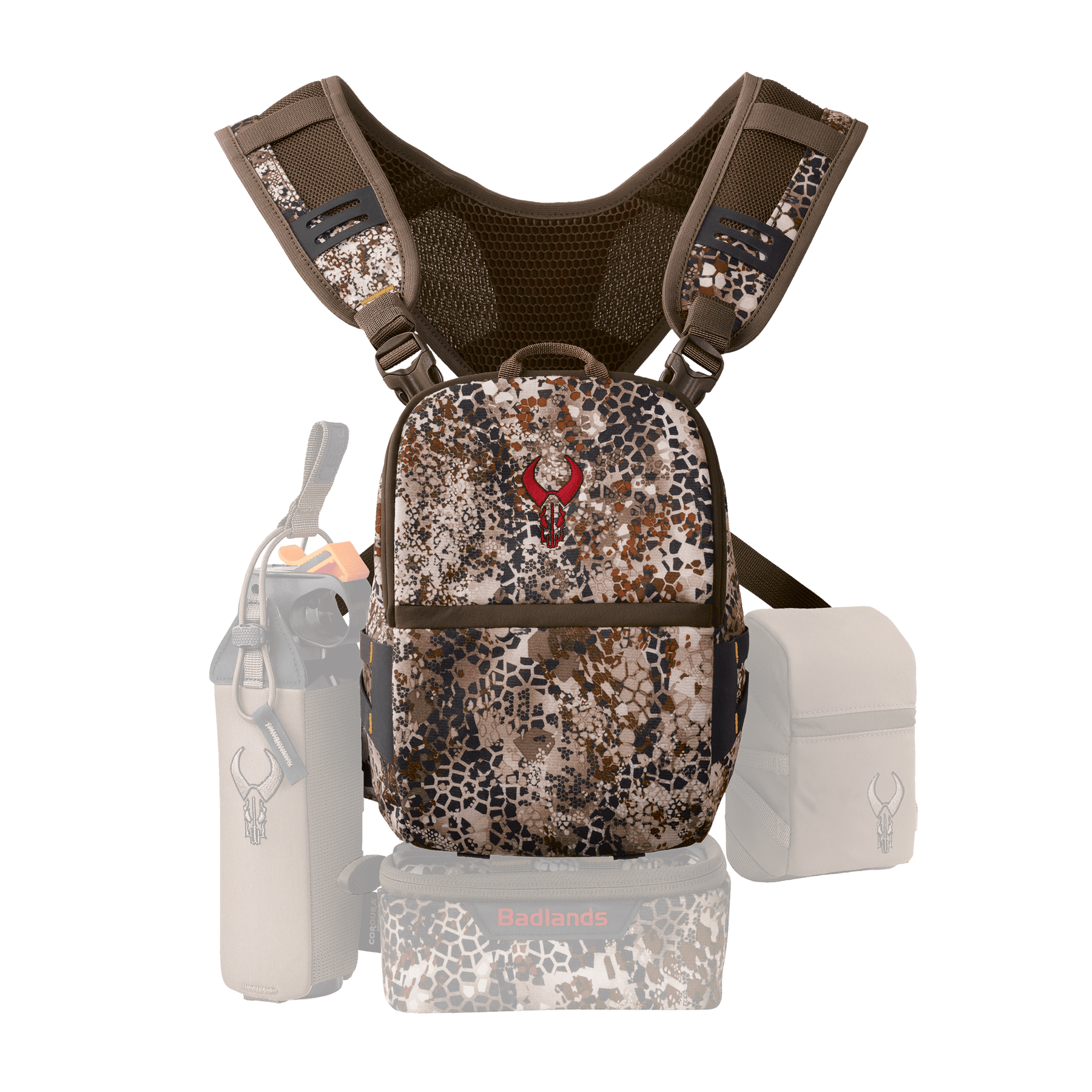 • White magnet icon on a red hexagon, representing Badlands' magnetic closure feature. Magnetic