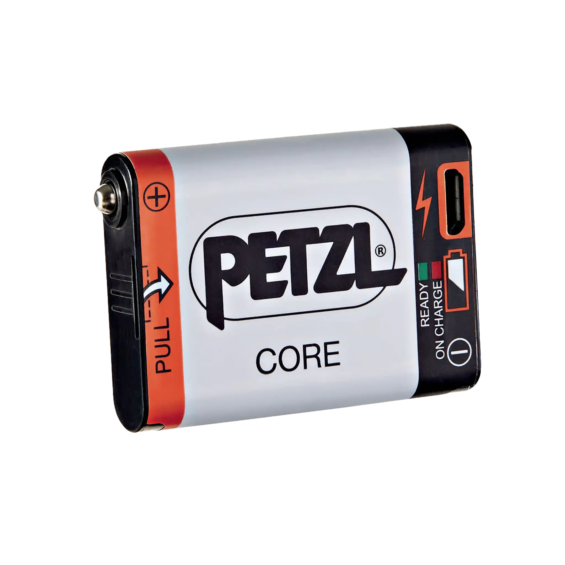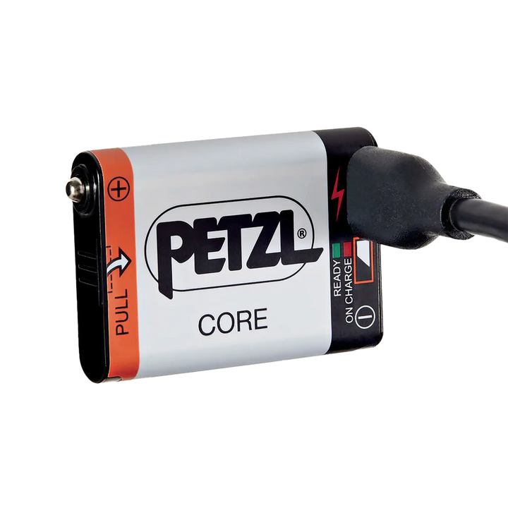The high-capacity, 1250 mAh Lithium-Ion PETZL CORE Rechargeable Battery, featuring the HYBRID CONCEPT design, provides excellent lighting performance, even at low temperatures. It offers an economical solution as the main power supply or as a back-up battery, and recharges directly with the integrated USB port.