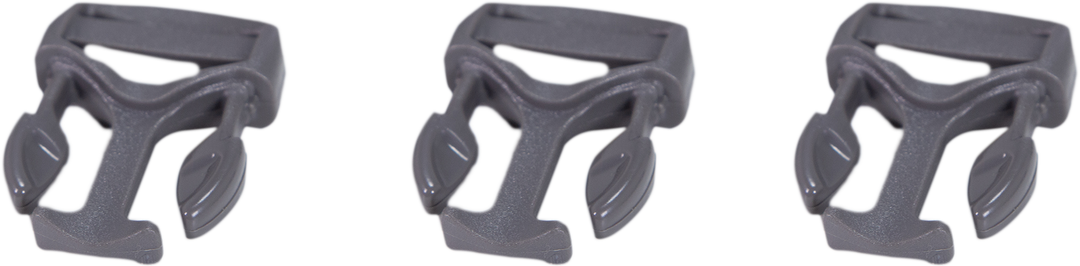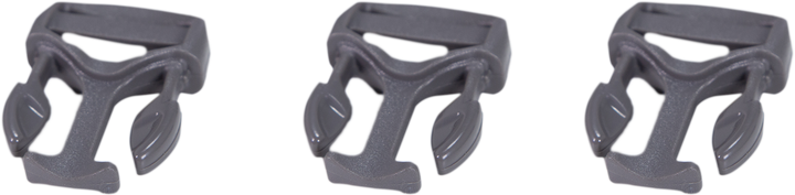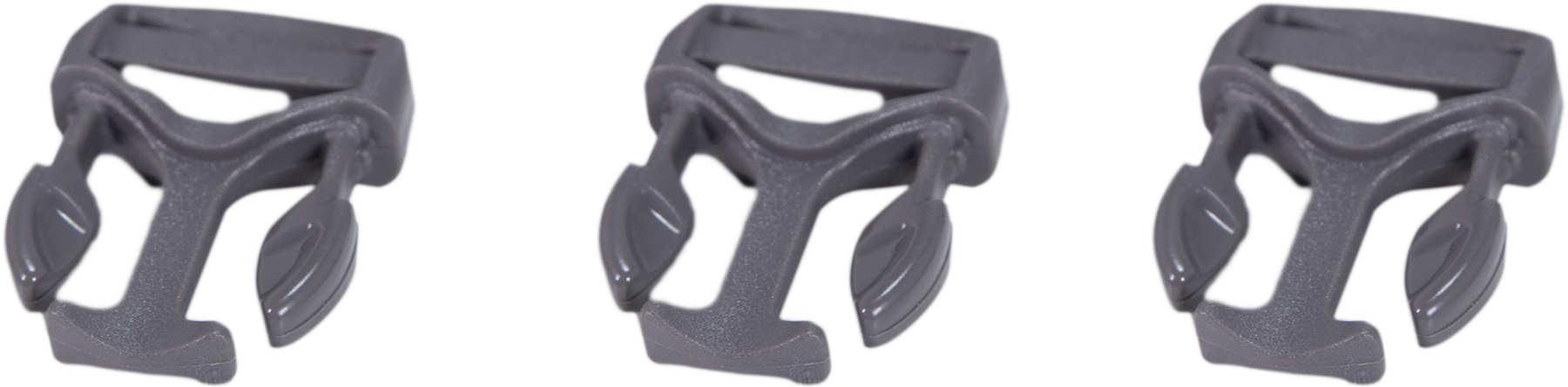 Three gray Badlands logo skull buckles, each with leaf-shaped prongs, shown on a white background.
