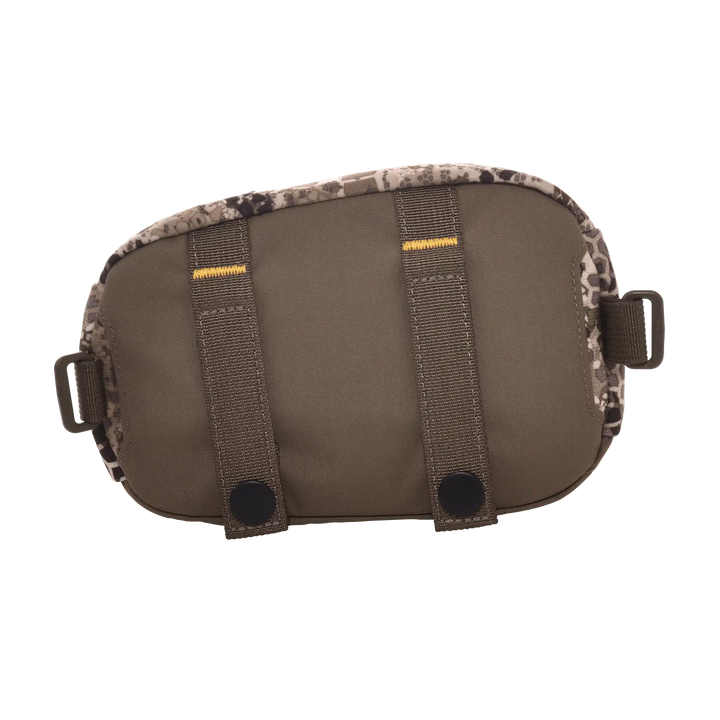 Small Badlands camo pouch with two vertical straps and side loops, designed for easy attachment to gear or packs.