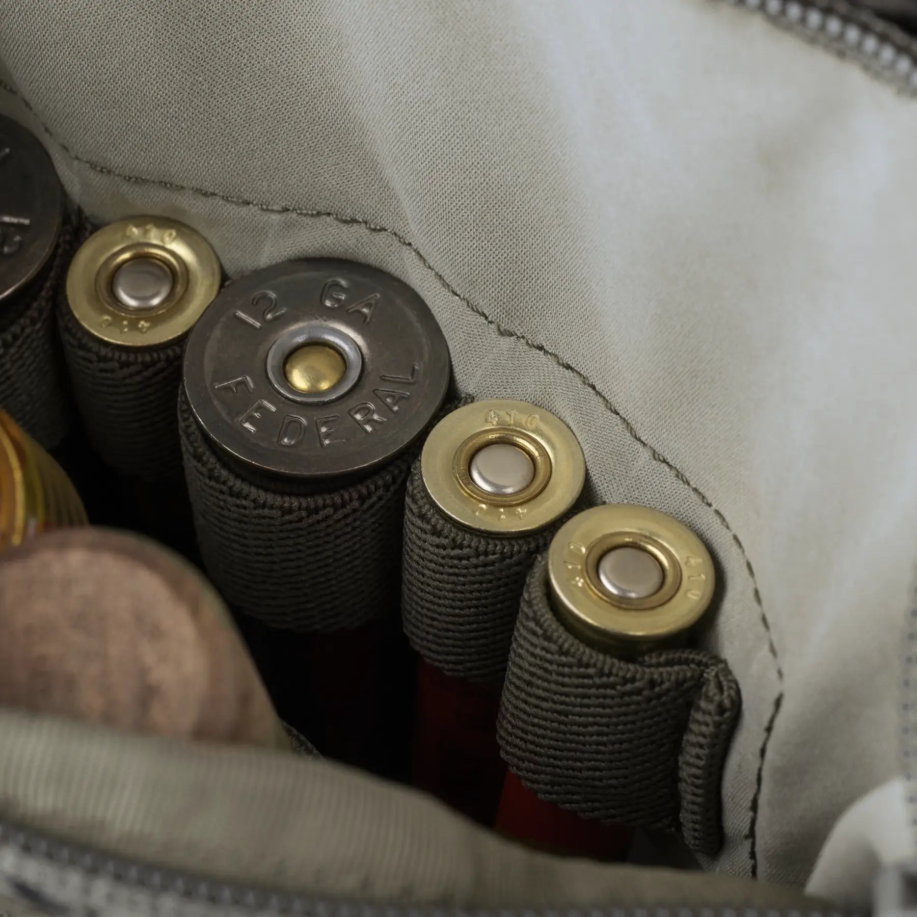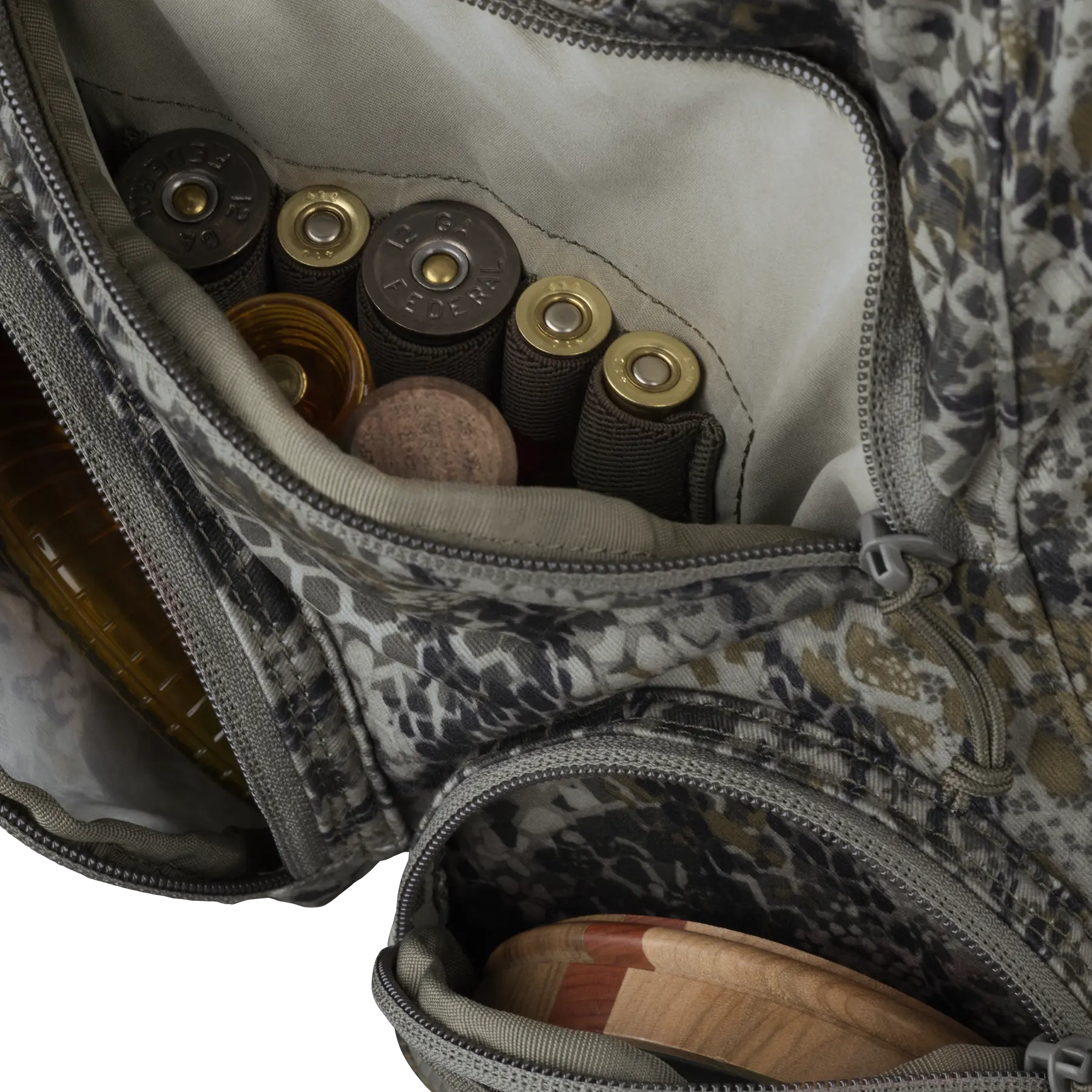 • Two zippered, secure slate call pockets with stretch accessory pocket attached