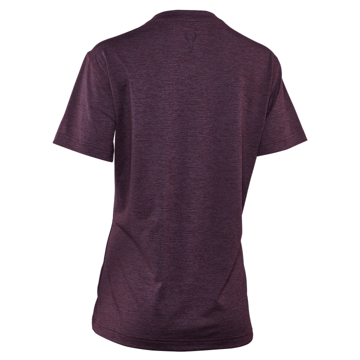 Maroon Badlands women's short-sleeve shirt with subtle skull logo on chest, crew neck, and moisture-wicking fabric.